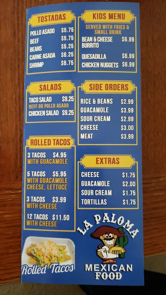 La Paloma Mexican Food Menu