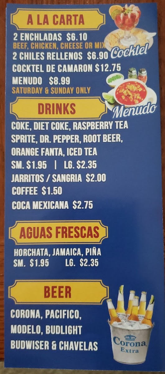 - Beverages: The menu includes juices and traditional Mexican drinks such as Micheladas.