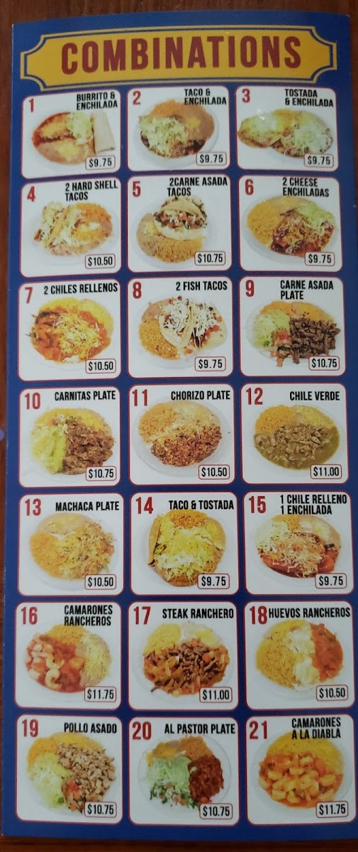 The menu at La Paloma Mexican Food features a broad range of traditional Mexican dishes suitable for breakfast, lunch, and casual dining. The offerings include various types of tacos, burritos, tostadas, and specialty plates, providing options for both quick meals and more substantial dining.