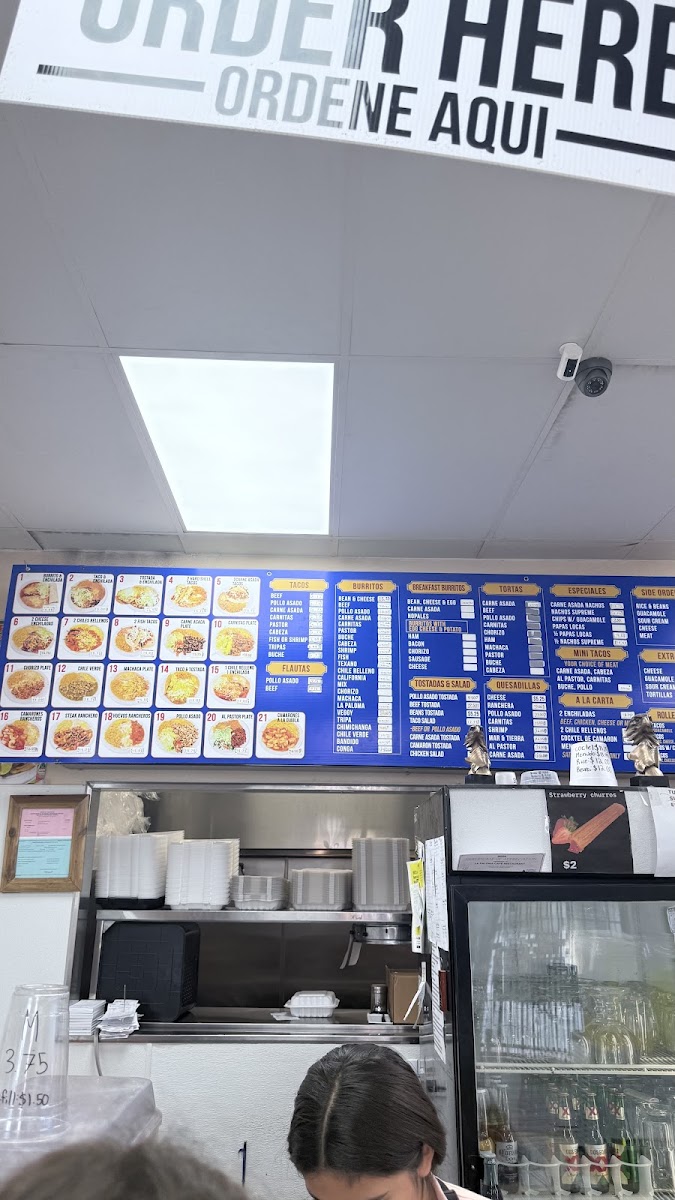 - Tacos: A variety of tacos including beef, pollo asado, carne asada, carnitas, pastor, cabeza, buche, fish, and shrimp. Options also include rolled tacos served with cheese and guacamole.
